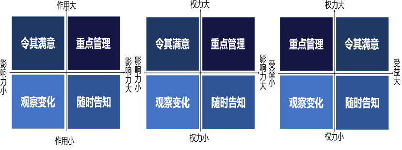 ● 识别、管理项目利益相关方,制定项目相关方沟通计划。建立起利益—目的—信息干系人管理思路。
