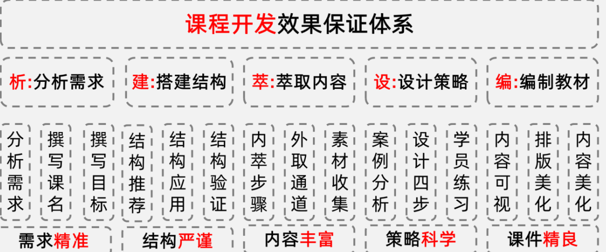 一表:一套标准的课程设计表,学员依据表格就能按流程输出标准课程