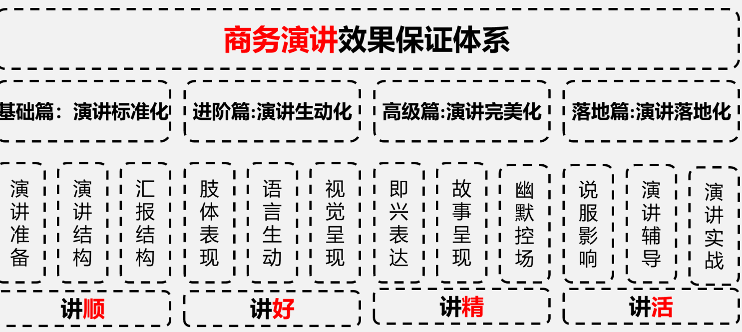 在这样的背景下,我们开发了这套商务演讲与高效表达课程,让有需求商务人士游刃有余的在各种场合下做好演讲。