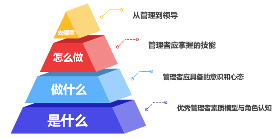 本课程主要从以下四个方面入手来系统提升管理者的综合素质与能力。第一,对管理者定位,知道优秀的管理者是什么样子,在管理中应扮演的角色是什么;第二,心态的调整,在管理中应该有什么样的意识和心态;第三,掌握的管理技能,学会如何管理团队、实现团队目标的方法;第四,领导力的提升,如何拥有权力之外的影响力。