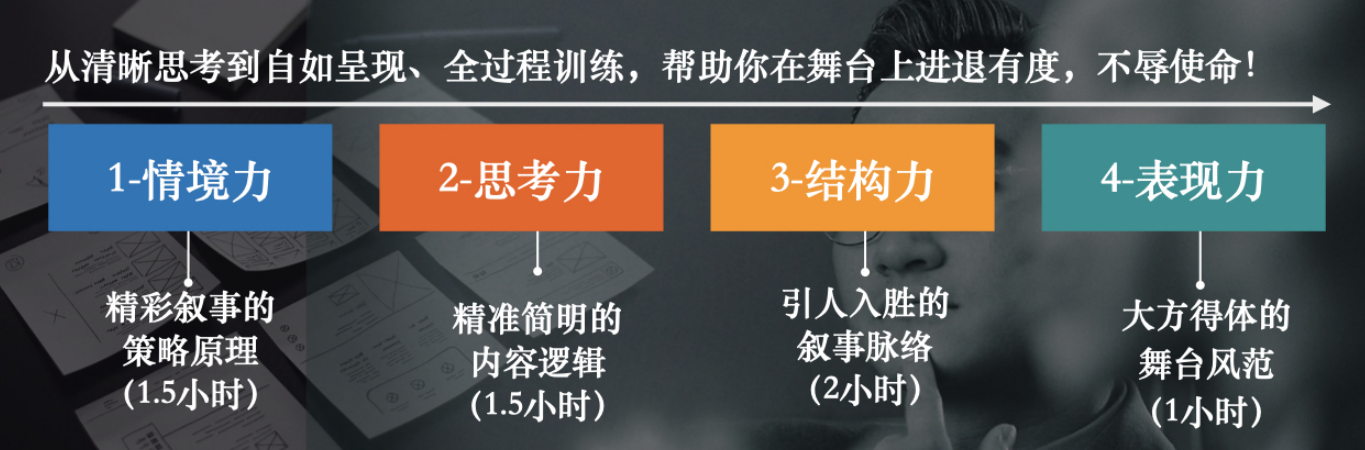 针对真实的场景:课程以最具代表性的营销提案为基础,针对最真实的『主题演讲』任务:销售演示、产品推介、客户沙龙等场景进行内容设计。