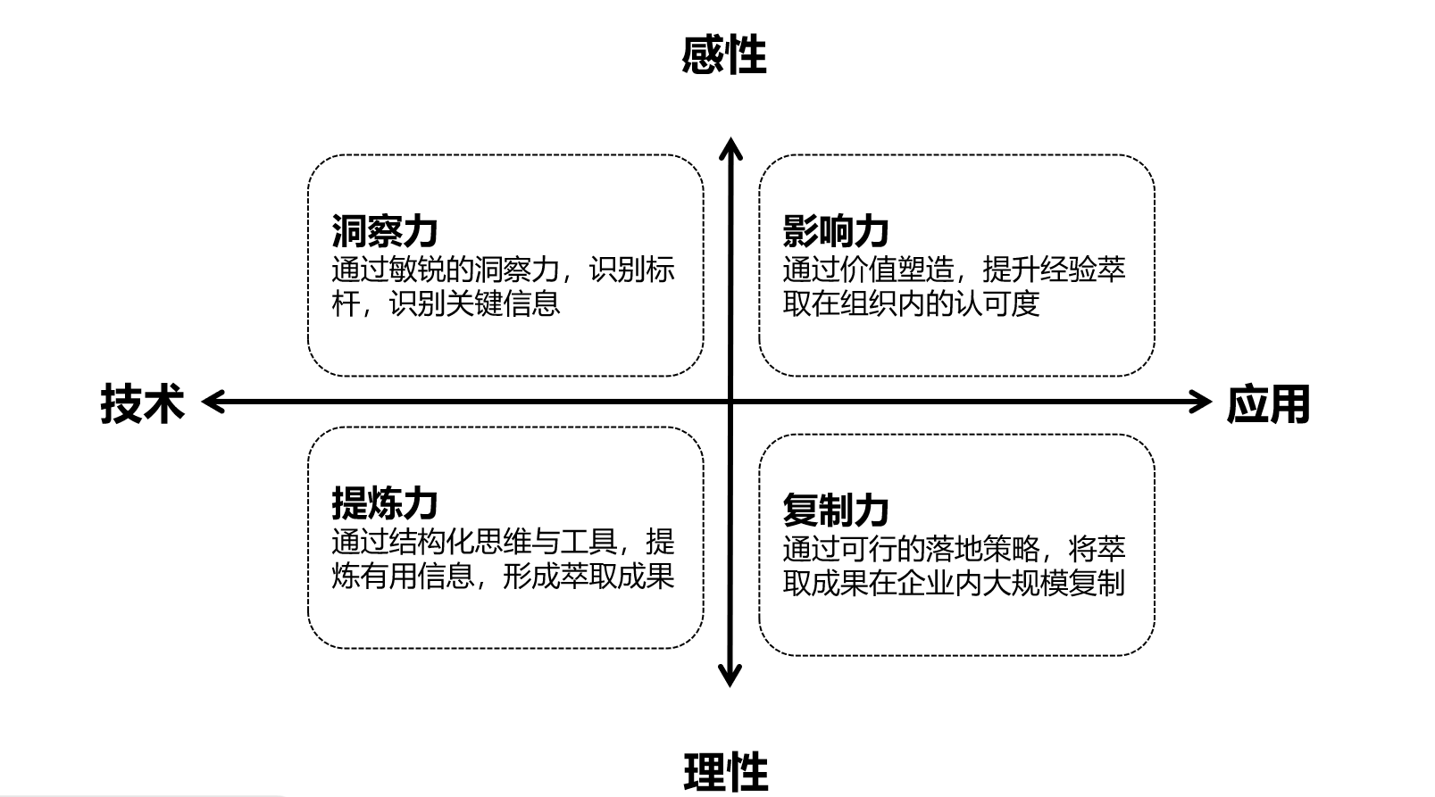 Ø 一项专业技能:会识人——发掘企业内部高价值的专家;会洞察——发现决定成败的关键事件;会提炼——迅速抽取经验的框架和要点;