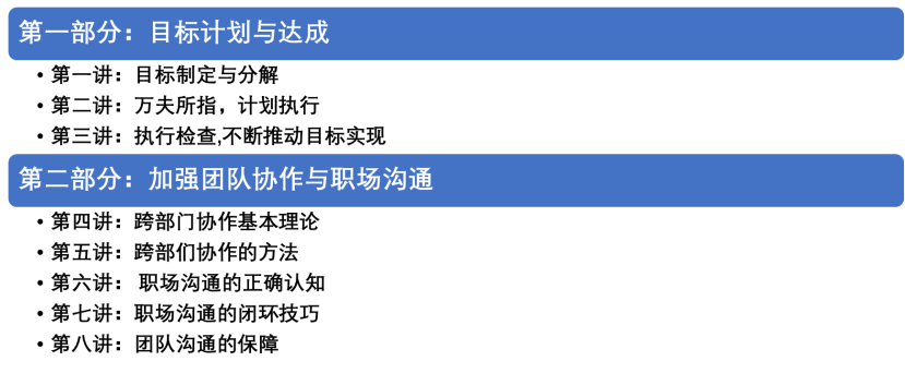 作为职场人士,无论是销售、行政还是技术等部门,都要面对两部分人群,一是外部客户,二是内部客户。这些都需要我们通过沟通,相互协作才能完成目标。本课程是先从目标计划开始,因为每个员工都是目标管理者。然后为了完成目标需要与其他人沟通协作,相关内容提供方法或模型,便于大家更好的转化落地。