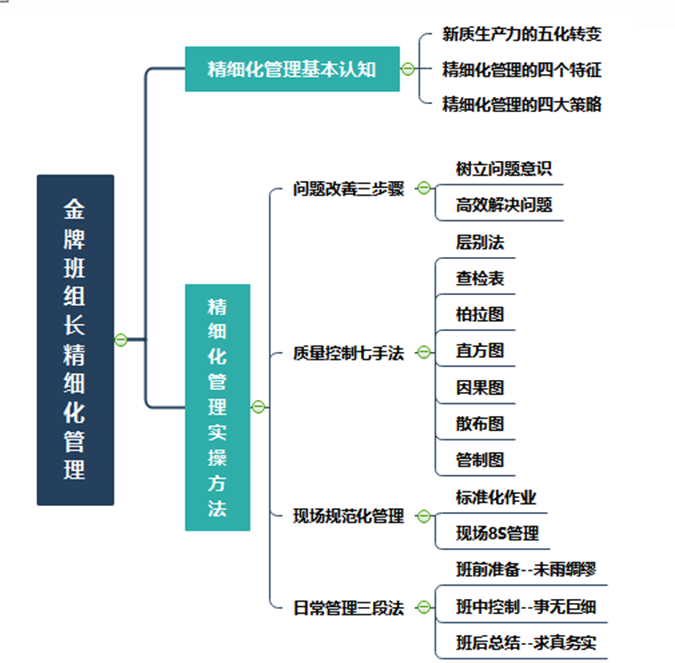 2. 基于班组长精细化管理中的常见问题场景,引导班组长建立基本管理思维,给工具、给方法、给案例,即学即用。