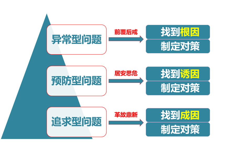 工作就是许多问题分析与解决的过程,问题解决能力是衡量员工能力的关键标准,让自己成为推动问题解决的积极变量! 如果没有掌握问题分析与解决的方法,对工作本身是一种阻碍。本课程从“异常型、追求型和预防型”3类核心问题切入,按照“定义问题what、明确要因why和制定对策how”3个步骤逐步讲解和互动练习,有效达成提高学员问题分析与解决能力的目的。