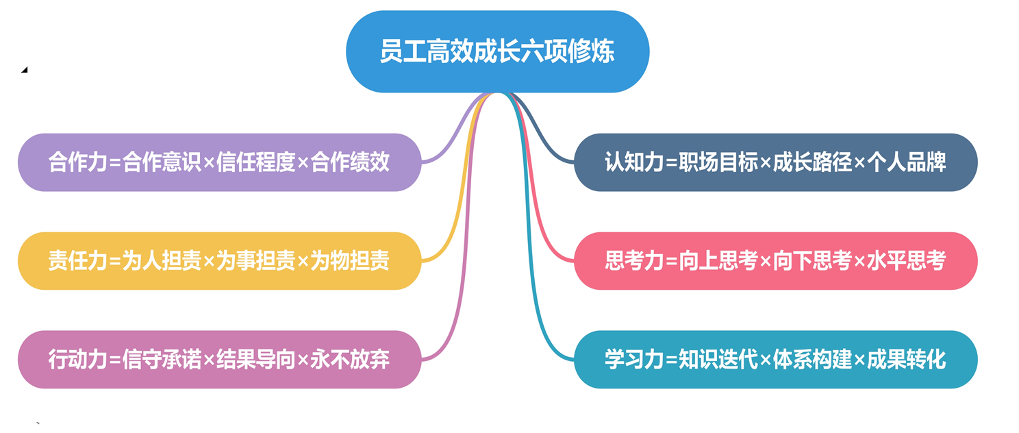 《新生代员工高效成长六项修炼》的课程设置,结合NLP、行为学、管理学的相关理念,采用先跟后带的方式,从心智模式的改变开始,帮助员工建立一套正向的心智系统,建立内部驱动,从而自己产生改变。