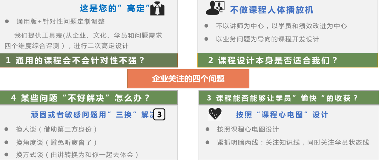 我们会通过职业素养与效能方面培训和您一起推动绩效改进。