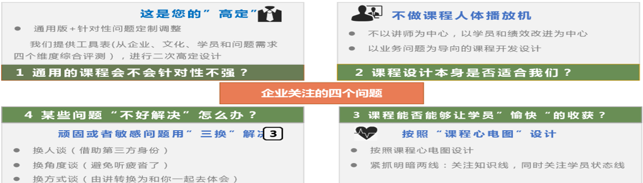 本课程系统化的对组织成员进行沟通技巧的培训与训练,从认知、流程和技巧三个维度全面提升成员的沟通水平,提高工作效率,进而提升组织绩效。