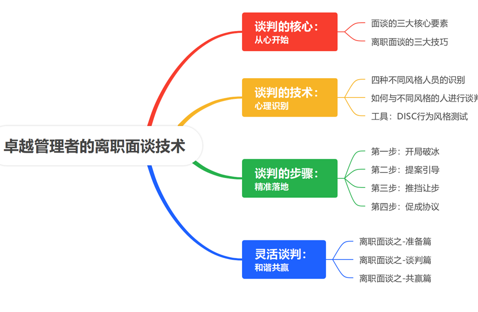 李老师集16年的人力资源管理经验及在人力资源各模块的面谈培训研究,专为管理者设计了一套独一无二的《卓越管理者离职面谈技术》课程,重点对离职环节进行深度剖析,通过阐述离职面谈技巧,实实在在解决各部门管理者在离职面谈中的疑难问题,帮助学员真正掌握专业的离职面谈技巧。