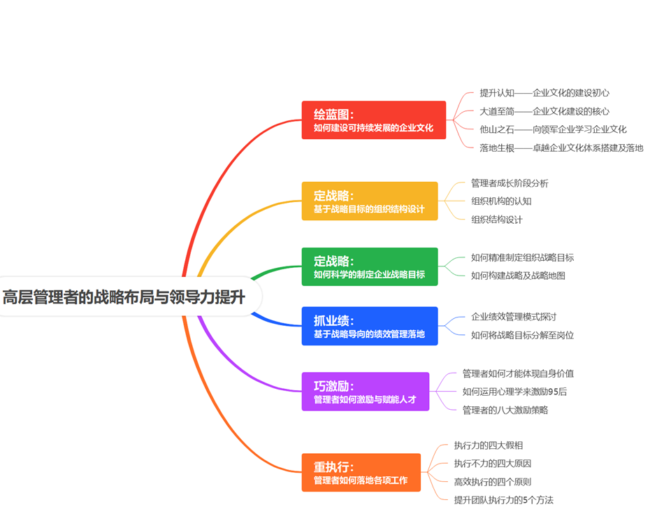 谁拥有优秀的管理和科技人才,拥有了卓越的用人机制,谁就有可能在竞争中获胜。本课程站在组织战略高度,从如何搭建卓越的企业文化来给人才描绘蓝图、加强企业的战略布局,规范企业管理体系、规范企业人组织架构、优化管理流程、优化绩效管理流程及思路、做好目标管理、挖掘绩优员工,设计人性化的激励机制,帮助企业高层管理者做好人才梯队培养的工作、为企业的可持续发展奠定基础。