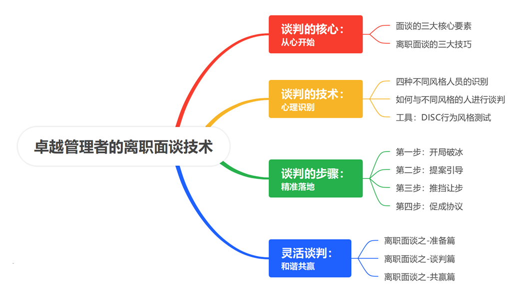 李老师集16年的人力资源管理经验及在人力资源各模块的面谈培训研究,专为管理者设计了一套独一无二的《卓越管理者离职面谈技术》课程,重点对离职环节进行深度剖析,通过阐述离职面谈技巧,实实在在解决各部门管理者在离职面谈中的疑难问题,帮助学员真正掌握专业的离职面谈技巧。