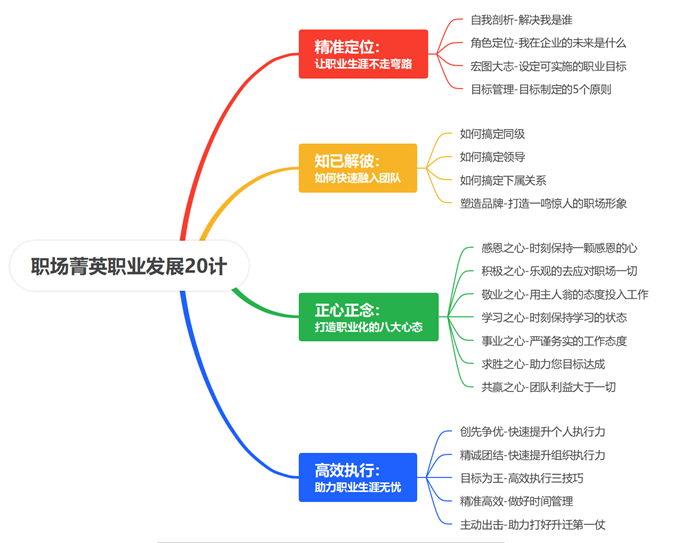 人人都渴望事业成功,这是人的本性。然而,有些人一毕业就陷入了迷茫和困惑,还有些人工作三五年后开始出现职业倦怠,不知道自己未来在哪里,更不清楚该如何行动,这对个人来说,是浪费时间,对企业来说就是阻碍了发展。那究竟该如何持续保持动力、让未来的每一天都充满挑战,充满乐趣,那就得好好的重新设计一下人生目标了。通过本课程的培训将帮助你明确职业规划、突破内外障碍、激发内心潜能、实现自我价值。