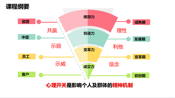 本课程通过心理学原理研究剖析,对人员的选用育留、人员激励、人员沟通等方面进行了深入的剖析,从而帮助企业管理部门做好人才管理工作。
