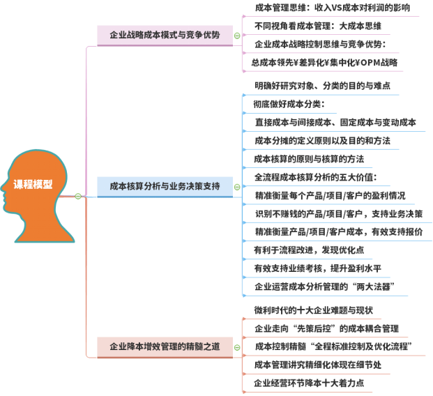 市场环境的剧烈变化,多项成本刚性上升,价格与利润双双下跌,直接影响企业的成长空间。如何将成本管理的创新思维融合到公司的战略、管理和执行的每个环节,是每个企业成本管理者都需要思考的问题,因此成本管理成为企业永恒的主题。企业成本的核算方式及准确度关乎到企业的业务决策,如何做好企业的成本核算分析与成本管理已成为企业管理的重中之重。那么在企业经营管理当中如何采用总成本领先战略?如何进行基于流程的采购成本管理?如何降低资金成本提升企业效益?企业成本控制的要点是什么?如何把握这些要点?如何处理企业创新与成本的关系?企业的战略又如何落地执行?“为有源头活水来”,企业降本增效人人有责,本课程通过案例教学帮助学员深入理解和掌握成本核算分析与控制精髓。