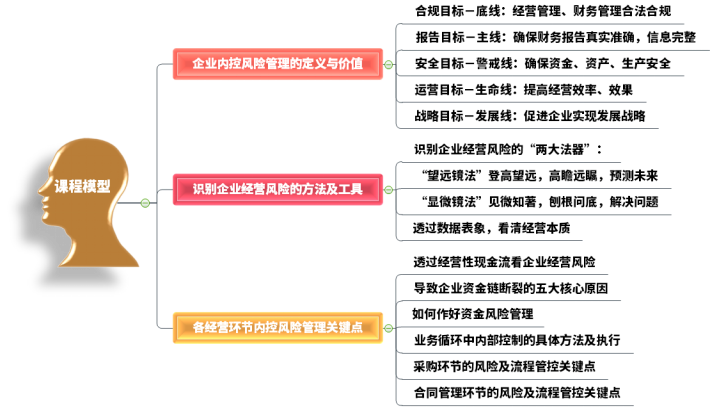 该课程旨在让参与培训人员具备经营风险意识,加强与提升内部管理能力,强化现金流管理,提高资金运作效率,降低成本增强效益,从风控角度出发,综合运用风险识别的管理工具,理解隐藏在数据背后的企业经营信息,做好风险分析与评估,采取相应内部控制措施。