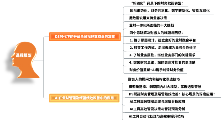数字智能时代如何利用AI做好业财一体化管理引领财务新时代?本课程以财务数字化转型和AI深入应用场景为切入点,带领财务人员直面数字化转型的挑战,通过详实的案例教学,深入浅出地讲解AI助推业财一体化给财务带来的变化,以及财务人的应对思路。从开阔全局视野、深入精通业务、掌握沟通技巧、创造财务价值等方面全力火开提升自我,助力企业更好地应对变革挑战,懂运营、谋战略、作决策,让财务管理真正帮企业实现价值提升!