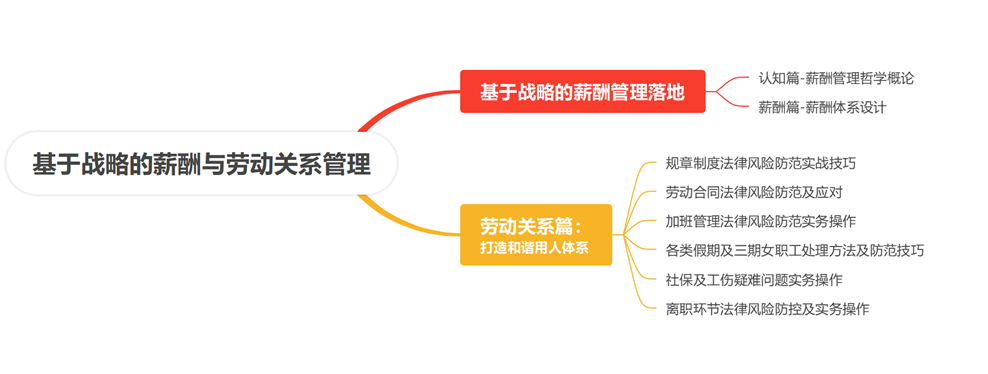 本课程从两大版块:即薪酬管理设计及企业用工风险防控。一是从薪酬体系的战略匹配性、薪酬体系的激励性、薪酬体系的内部公平性、薪酬体系的可操作性对现有的薪酬管理系统进行了全方位、详尽细致的分享。二是,结合企业自身的特点,参考国家相关法律法规,针对企业管理者自身的法律知识储备不足,导致一系列不必要的劳动纠纷。从员工入职前、到岗后、离职中、后等各阶段可能发生的各种用工风险,通过案例分享,结合国家相关法律法规,给出精准的建议及操作方式,帮助企业做好用工风险的管控,达到双赢。
