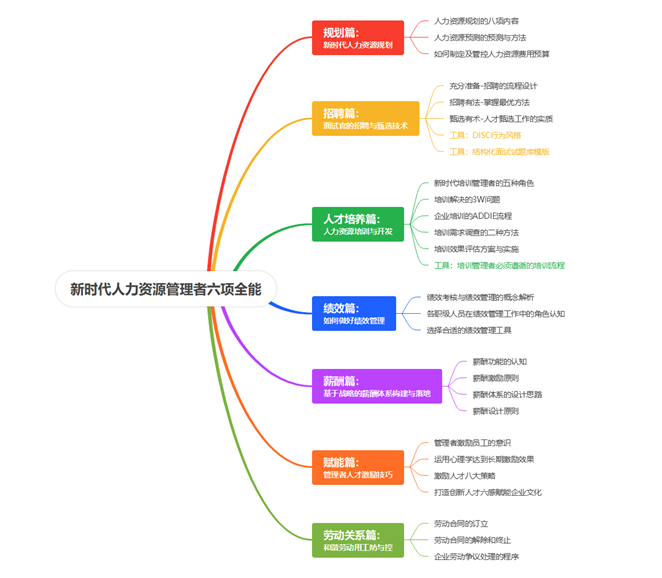 为了应对新的人才竞争,必须把实施人才战略作为企业发展第一战略,优化人力资源管理,加大人力资源开发力度,建立健全符合企业人才流动机制、目标明确及综合激励的人才培养机制、公平竞争及优胜劣汰的人才使用机制、绩效为王及体现价值的人才分配机制,本课程从企业人力资管理体系建设出发,重点研究人才战略规划的痛点,运用人才甄选工具、人才培养体系搭建、绩效与目标管理、薪酬体系搭建、员工激励与赋能等解决企业人力资源全盘管理的具体事务。帮助企业人力资源管理者及部门管理者提升人力资源管理技能,让人力资源管理者成为更专业、更接地气的管理全才。