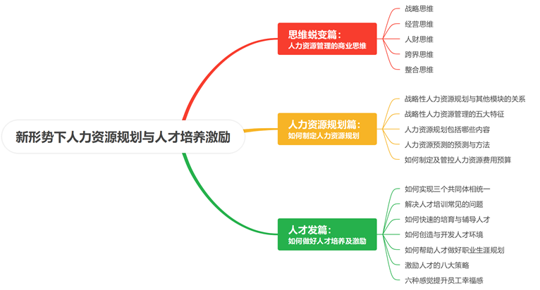 谁拥有优秀的管理和科技人才,拥有了卓越的用人机制,谁就有可能在竞争中获胜。为了应对新的人才竞争,必须把实施人才战略作为企业发展第一战略,优化人力资源管理,加大人力资源开发力度,建立健全符合企业人才流动机制、目标明确及综合激励的人才培养机制、公平竞争及优胜劣汰的人才使用机制、绩效为王及体现价值的人才分配机制,本课程从人才发展的新趋势出发,重点研究人才战略规划的痛点、人才培养工具、人才激励等帮助企业人力资源管理者及部门管理者做好人才培养及人才激励的工作。