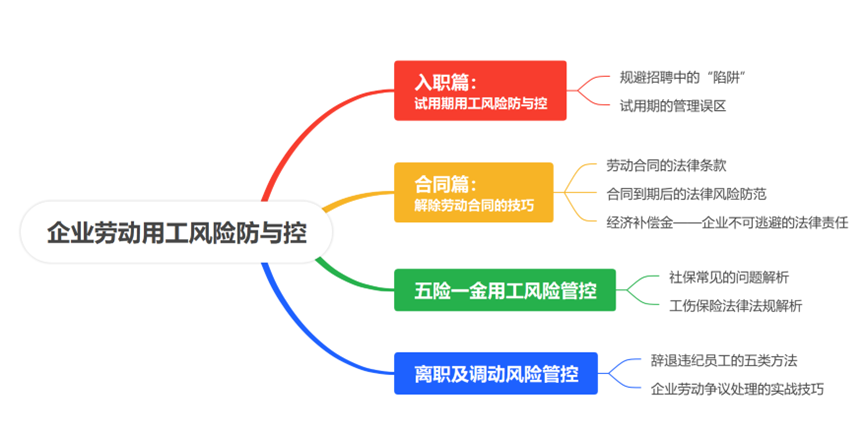 然而,在现实的劳动用工管理中,由于企业管理者自身的法律知识储备不足,加之劳动者对法律法规似懂非懂,导致一系列不必要的劳动纠纷。如何能够妥善的预防及处理员工在企业生涯中可能发生的一系列劳动风险,成了每个企业和谐劳动用工的核心首要工作,本课程将从员工入职前、到岗后、离职中、后等各阶段可能发生的各种用工风险,通过案例分享,结合国家相关法律法规,给出精准的建议及操作方式,帮助企业做好用工风险的管控,达到双赢。