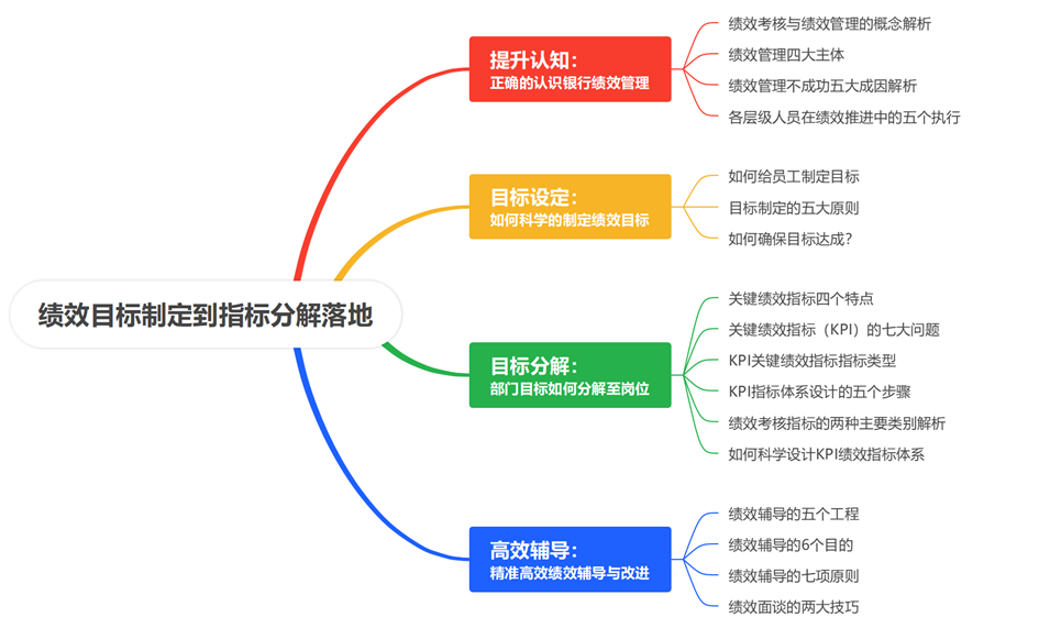 大家都想做好,但却始终找不到突破口,绩效管理流于形式,不了了之。因此,作为银行管理人员,直接对银行的战略目标负责。只有让这个层级的人更清楚组织绩效与个人绩效的重要性,真正做到能够分解组织目标到岗个人。将团队个体目标与银行战年度目标有机地联系起来。才能真正实现“有组织的战略绩效管理”。