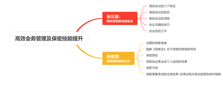究竟该如何高效的完成会议管理、同时做好本单位、本岗位的保密管理工作呢?本课程从高效会议的八个特征、会议的规范、会议的流程、会议的沟通技巧、泄密的途径、泄密的法律责任、如何做好保密工作等。从而达到高效会议落地及做好保密工作,提升工作效率的同时,降低单位的泄密风险。