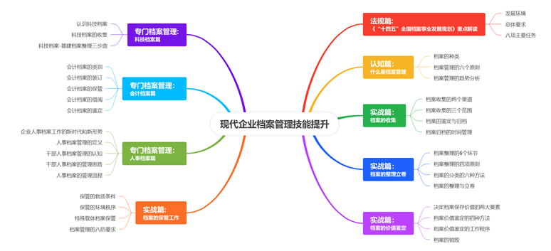 做好档案管理,不仅能够更清晰了掌握企业发展的每个阶段的重要事项,还可以大大的提升工作效率。然而,在现实工作场景中,仍有一些企业还没有真正的认识到档案的重要性。本课程结合国有企业档案管理的特点,从档案管理理论上提高学员对于档案管理的认识和重视,加强档案管理的范围及规范档案管理的流程,并给出档案管理的要求和管理方法。课程以理论为出发点,切合实际情况,结合企业在实际工作中遇到的需要处理的档案,进行模拟,对出现的问题,有的放矢的进行攻关。提高学员的思维能力、应变能力、分析问题、解决问题的能力。