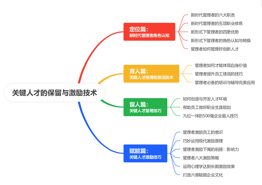 谁拥有优秀的管理和科技人才,拥有了卓越的选用育留机制,谁就有可能在竞争中获胜。为了应对新的人才竞争,必须把实施人才战略作为企业发展第一战略,优化人力资源管理,加大人力资源开发力度,建立健全符合企业人才流动机制、目标明确及综合激励的人才培养机制、公平竞争及优胜劣汰的人才使用机制、绩效为王及体现价值的人才分配机制,本课程从人才发展的新趋势出发,重点研究人才战略规划的痛点,人才培养工具、人才留用与激励技巧等解决核心人才的激励与留用,帮助企业人力资源管理者及部门管理者做好人才梯队培养的工作。