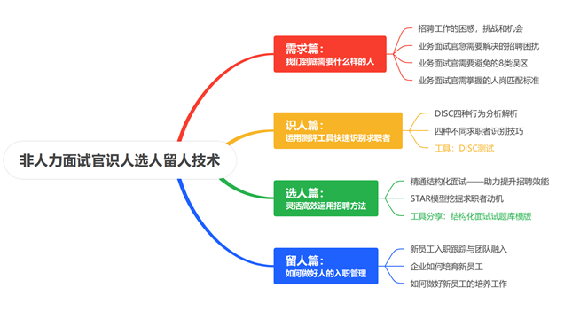 收获:学会此工具,通过求职者的语言及肢体语言快速识别求职者行为处事风格,精准分析,识别求职者稳定性、个性特征、更加高效的匹配岗位。
