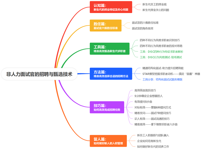 ✔ 学得会:充分把握招聘需求分析,做好人才定位及方法选择,掌握面试甄选技巧,科学评估,明确录用决策;