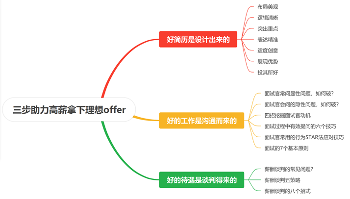 本课程将从简历设计、面试技巧及薪酬谈判三个方面,助力各位职场新秀们找到一份理想工作,助力实现完美人生。