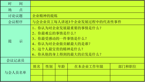 目的:通过开放空间让学员在思考、提炼和讨论中深刻理解企业精神的内涵