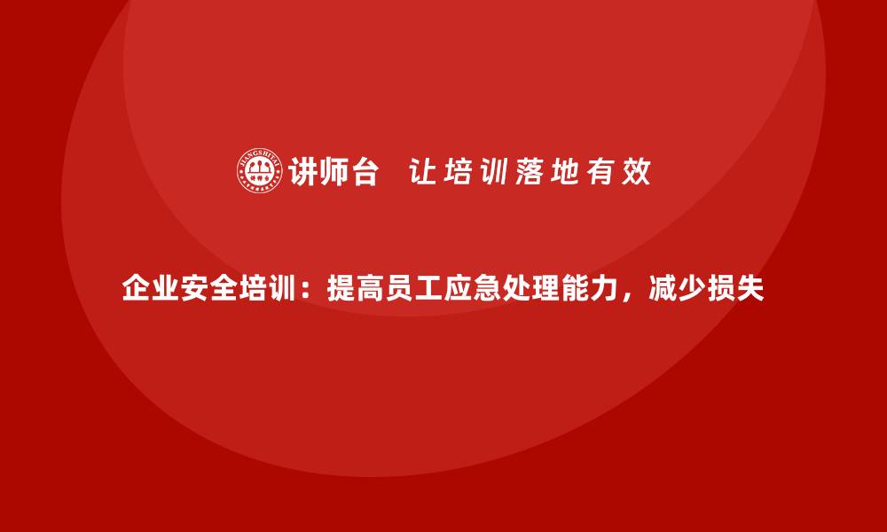 企业安全培训不仅是提升员工能力的手段,更是减少企业损失的重要策略。具体措施包括: