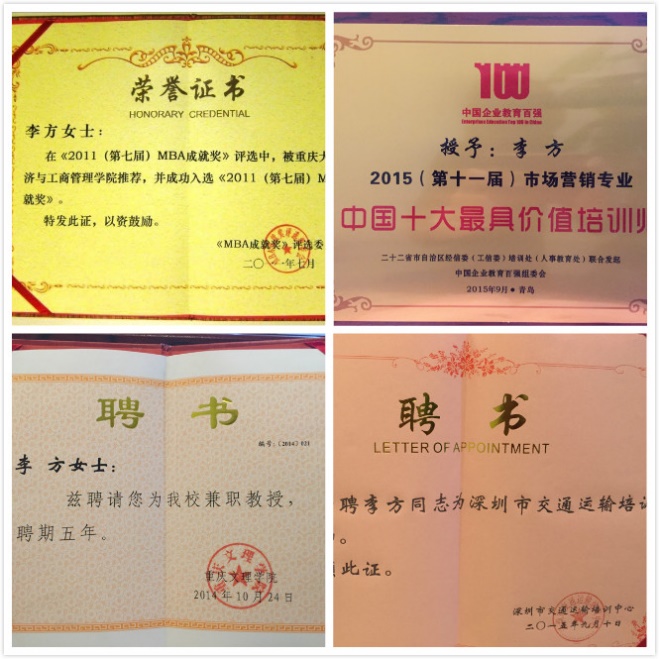 2011年7月,获得《2011(第七届)中国MBA成就奖》,标志着中国管理权威学术组织对李方老师管理成就的充分肯定。